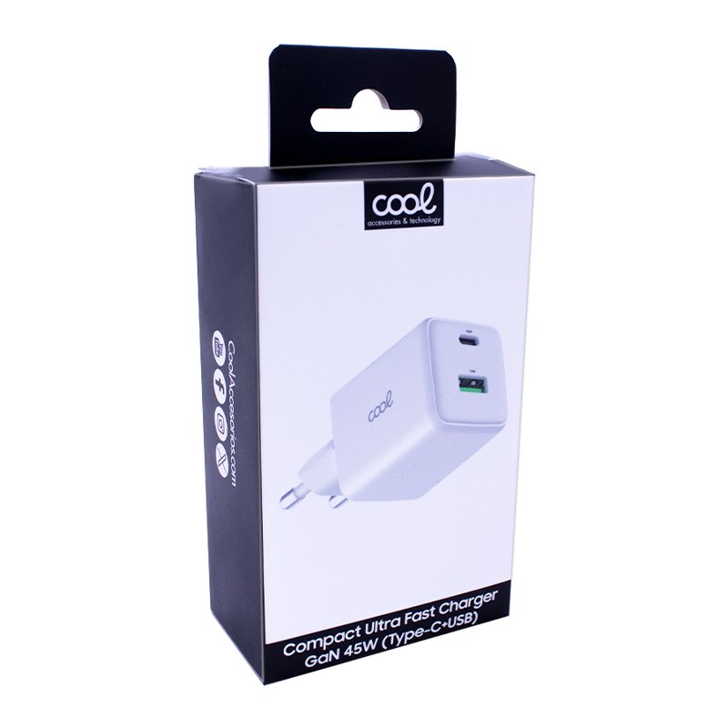 Cargador Red Universal Ultra Fast Dual (PD) Tipo-C + USB COOL (45W) GaN Blanco